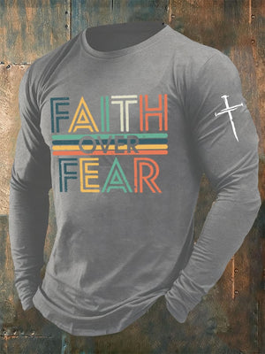 🔥Buy 3 Get 15% Off🔥Men's casual long-sleeved faith overcomes fear printed long-sleeved T-shirt