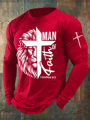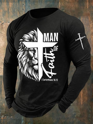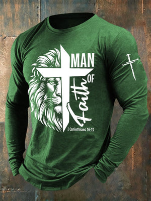 🔥Buy 3 Get 15% Off🔥Men's casual long-sleeved MAN OF Faith printed long-sleeved T-shirt