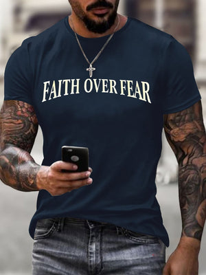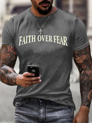 🔥Buy 3 Get 15% Off🔥Men's Faith Over Fear Printed Casual T-Shirt