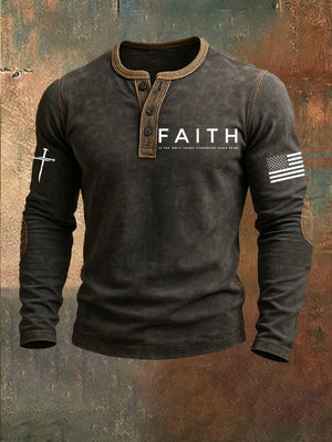 🔥Buy 3 Get 15% Off🔥Men'S Faith Print Casuasl Henley Collar Shirt