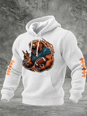 Men's Football Print Checkered Fabric Hooded Sweatshirt