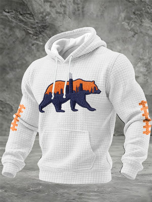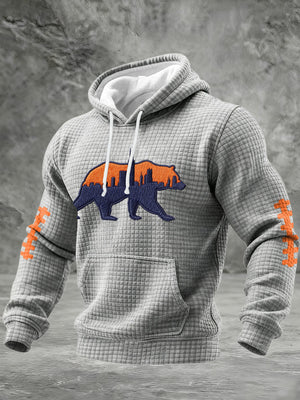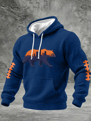 Men's Football Print Checkered Fabric Hooded Sweatshirt