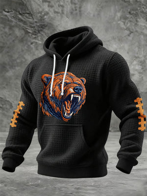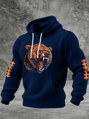 Men's Football Print Checkered Fabric Hooded Sweatshirt