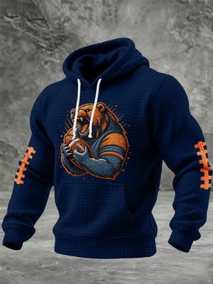 Men's Football Print Checkered Fabric Hooded Sweatshirt