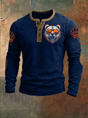 Men's Football Print Henley Top