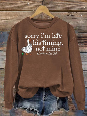 Women's Goose sorry I’m late his timing not mine Sweatshirt