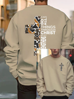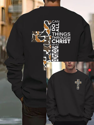🔥Buy 3 Get 15% Off🔥Men's I Can Do All Things Through Christ Who Strengthens Me. Print Casual Sweatshirt