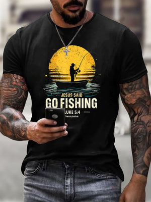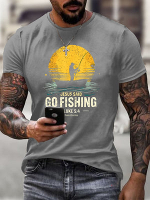 Men's Jesus Said Go Fishing Printed Casual T-shirt