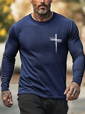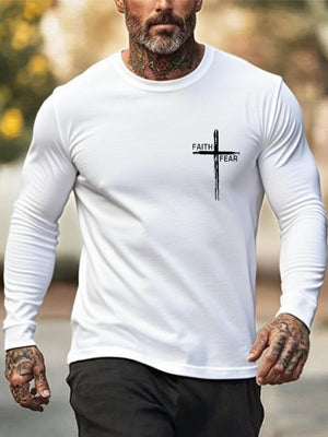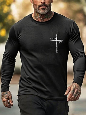 🔥Buy 3 Get 15% Off🔥Men's Retro Faith Cross "Faith Over Fear" Print Crew Neck T-Shirt