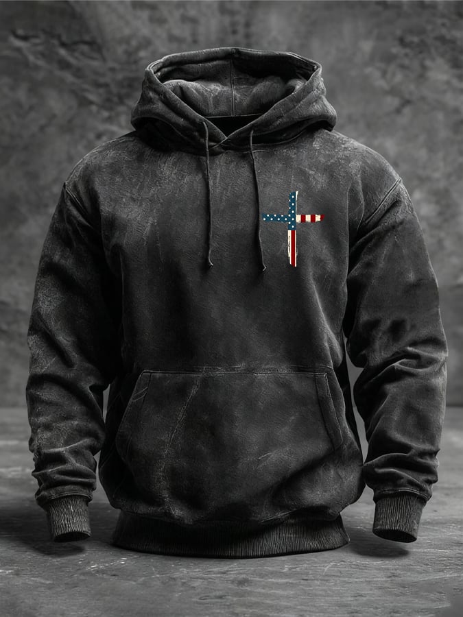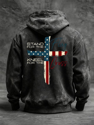 Men's Stand For The Flag Kneel For The Cross Printed Casual Hoodie