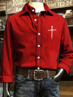 🔥Buy 3 Get 15% Off🔥Men's Vintage Faith Cross Design Printed Long Sleeve Casual Shirt