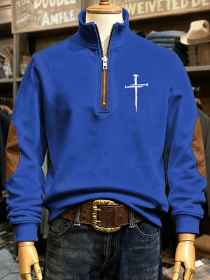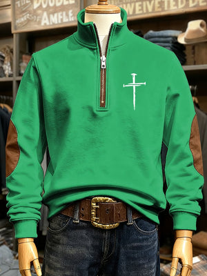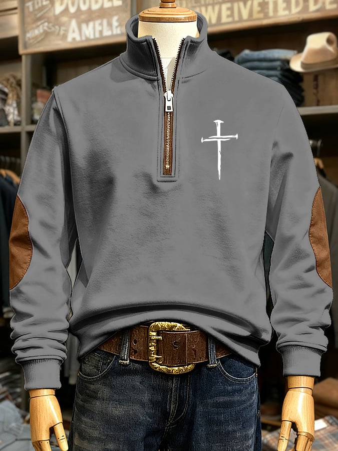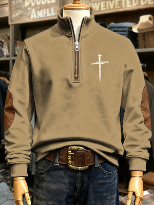 🔥Buy 3 Get 15% Off🔥Men's Vintage Faith Cross Print Casual Zip Sweatshirt