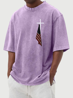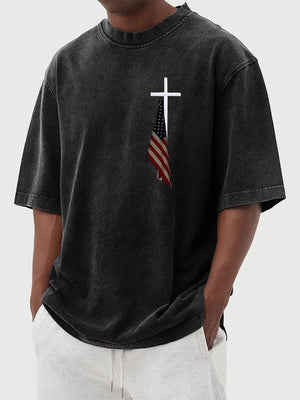 🔥Buy 3 Get 15% Off🔥Men's Vintage Flag Cross Print Cotton Washed T-Shirt