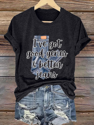 Retro I've Got Good Genes & Better Jeans Print T-Shirt