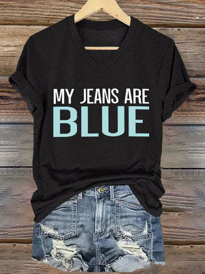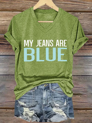 V-Neck Retro My Jeans Are Blue Print T-Shirt