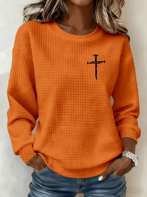 Women's Cross Crew Neck Waffle Sweatshirt