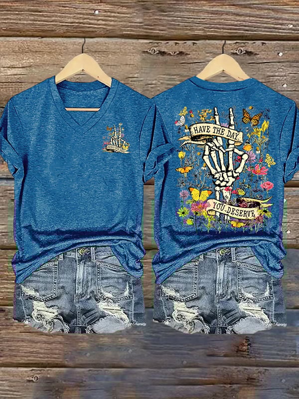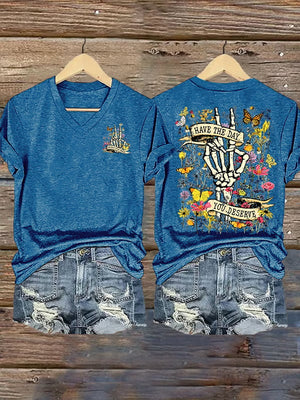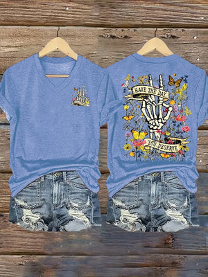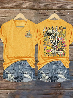 Women's Flower skull hand gesture Of WDNC Club We Do Not Care Menopause Perimenopause Print T-Shirt