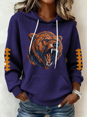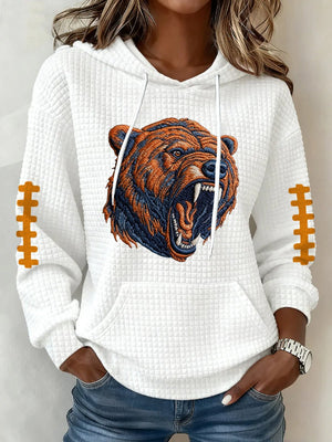 Women's Football Print Waffle Fabric Hooded Sweatshirt
