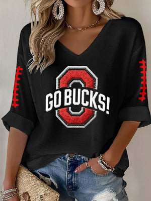Women's Football Print Waffle Long Sleeve T-Shirt