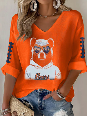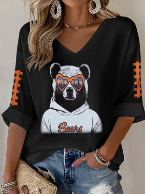 Women's Rugby Print Waffle Long Sleeve T-Shirt