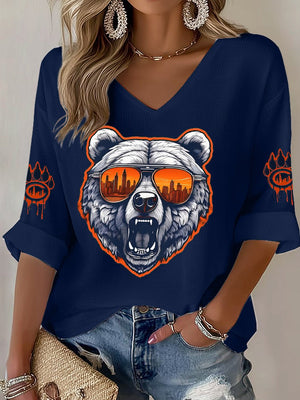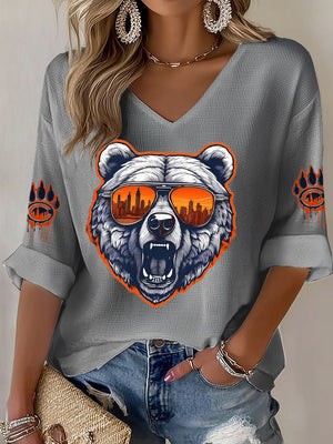 Women's Rugby Print Waffle Long Sleeve T-Shirt
